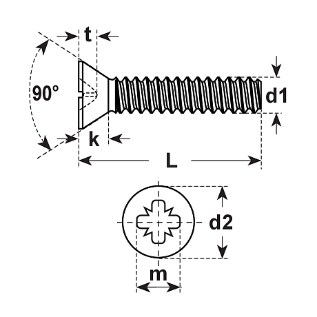 Vis à tête fraisée 90° acier 4.8 Zb DIN 965
