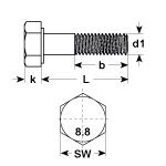 Vis à tête hexagonale acier 8.8 noirDIN 960 MF